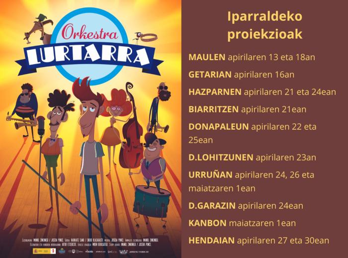 Imanol Zinkunegik eta Joseba Poncek zuzendutako 'Orkestra lurtarra' haurrentzako euskarazko animaziozko filma iritsi da Ipar Euskal Herriko zinemetara. Harkaitz Canoren izenburu bereko eleberrian oinarritua da, eta musikaren atalari arreta berezia jarri diote egileek.