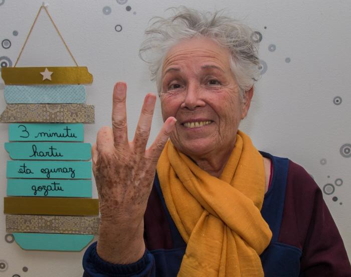 Je me réjouis aussi de voir Olentzero ou le Carnaval dans nos rues, et j'aime beaucoup la vie. Je pense que je devrais m'aimer davantage pour être heureuse. C'est vrai que cette éducation catholique ou apostolique que nous avons reçue nous a fait croire que nous devions souffrir dans cette vie. Maintenant, je dis que ce monde est fait pour être heureux. Si je n'aime pas faire quelque chose, je ne le fais pas et je n'ai pas besoin de me justifier.